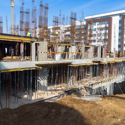 La nivelul ansamblului, lucrarile avanseaza constant: se executa placa de beton armat peste etajul 1, iar la o alta cladire se lucreaza la stalpii de deasupra parterului. Ritmul sustinut al executiei reflecta progresul planificat, consolidand tranzitia catre etajele superioare, conform graficului stabilit pentru Ananda Residence II.