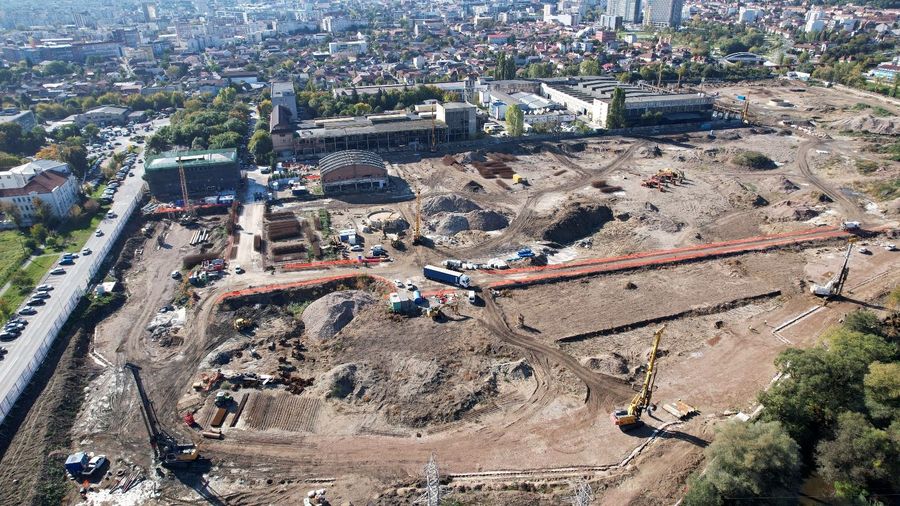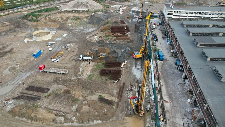 Pe santier, compania Terratest Geotehnic, lider in executia de fundatii speciale si imbunatatire a terenului, are mobilizate 8 utilaje de piloti si alte doua pentru pereti mulati. Terratest este responsabila de realizarea fundatiilor pentru acest proiect de anvergura.