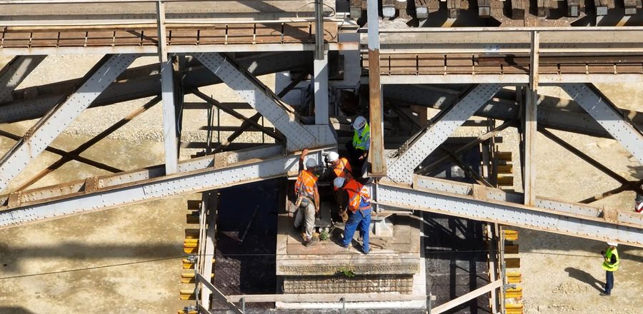 ![]() Potrivit CFR, executia lucrarilor de ripare a cuprins urmatoarele etape: scoaterea de sub tensiune a catenarei, desfacerea si demontarea tronsoanelor de sina din zona imbinarilor tablierelor metalice existente (zona aparatelor de reazem), relocarea si protejarea instalatiilor feroviare existente, mutarea podurilor provizorii de pe firul II pe firul I, riparea tablierelor metalice existente, inclusiv cadru sina si traverse de pe firul II pe firul I si restabilirea continuitatii caii pe firul I.