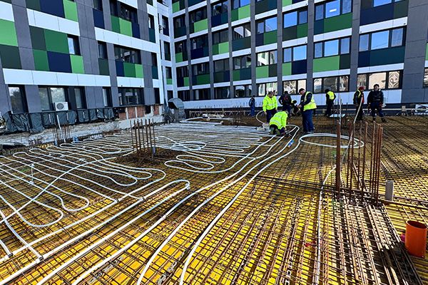 Dintre inovatiile tehnologice folosite pe santiere, se remarca sistemele geoenergetice integrate in fundatii, reprezentate de piloti energetici (energy piles) cu circuit de tevi PE-Xa integrat in armatura fundatiei, utilizand caldura din sol pentru alimentarea pompelor de caldura sol-apa. Acestia prezinta avantajul eliminarii necesitatii unui camp clasic de foraje, reducand costurile si amprenta la sol. De asemenea, folosim T.A.B.S. (Thermally Activated Building Structures), reprezentate de plansee din beton cu circuite de incalzire/ racire integrate in masa structurala cu beneficii date de confort termic uniform, compatibilitate cu pompe de caldura (joasa temperatura), eficienta energetica ridicata.