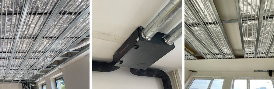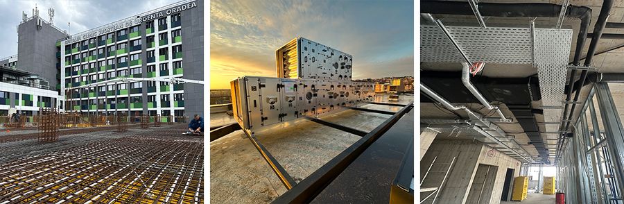![]() Tot in randul noutatilor se numara pompele de caldura hibride combinate cu sistemul de recuperare a energiei din apa geotermala uzata termic (combinatii sol-apa si aer-apa pentru acoperirea eficienta a incalzirii si racirii in functie de sezon si de resursele disponibile), sistemele de incalzire-climatizare radianta montate in tavane de gipscarton, pentru care detinem un brevet de inventie obtinut in 2025, BMS (Building Management System) pentru monitorizarea si controlul in timp real al parametrilor instalatiilor, metodologii de executie accelerata (Fast-Track Construction) ce permit planificare simultana a lucrarilor de structura, instalatii si finisaje, BIM pentru detectia coliziunilor si optimizarea traseelor, surse regenerabile integrate, cum ar fi panourile fotovoltaice hibride (electrice si termice) etc.